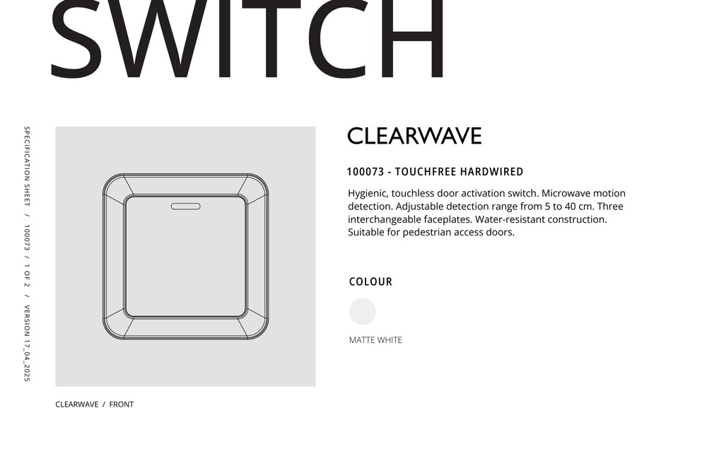 TECH DATASHEET_SWITCH_100073_TOUCHFREE HARDWIRED CLEARWAVE